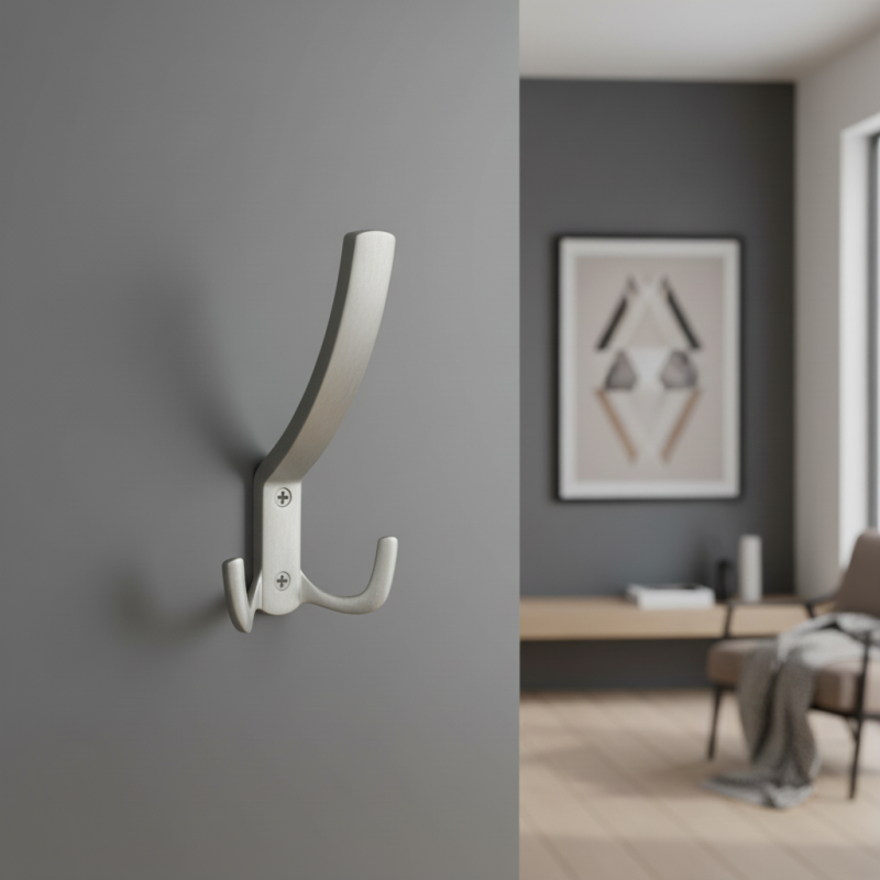 Tento väčší model zo série VESNA ponúka trojitý háčik, ktorý umožňuje komfortné a prehľadné zavesenie kabátov, tašiek, uterákov či ďalších doplnkov.