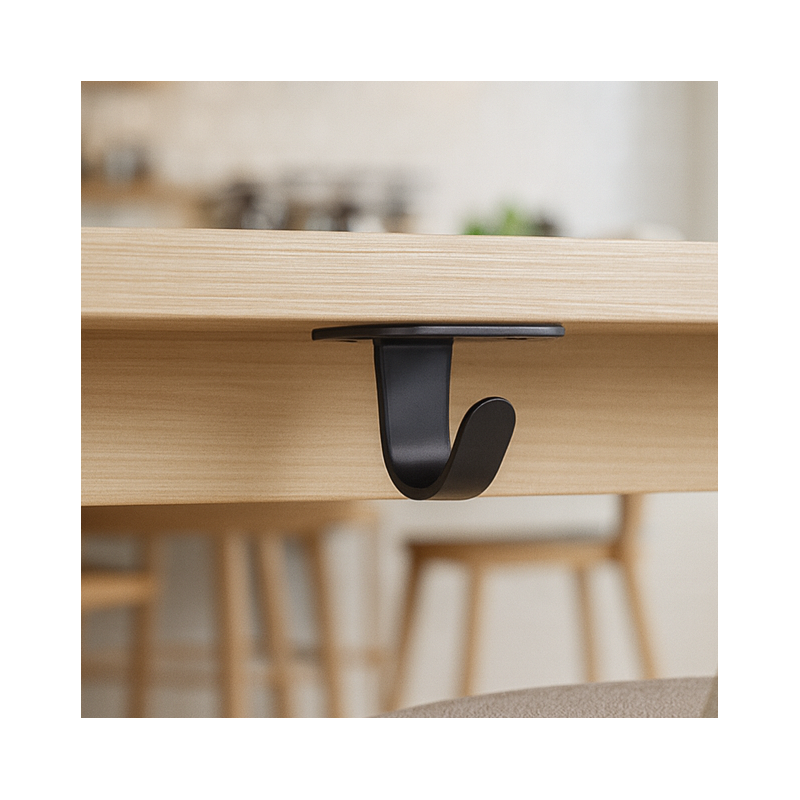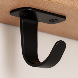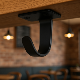Montáž prebieha zo spodnej strany, čo zaručuje estetické a diskrétne riešenie. Vešiak je ideálny na vešanie kabeliek, búnd a iných predmetov v kaviarni, reštaurácii, bare, ale aj v kuchyni, garáži či na záhrade.