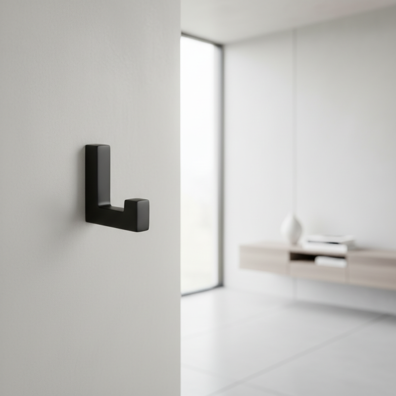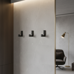 Moderný a minimalistický vešiak MAXA v čiernej matnej úprave je ideálny doplnok do predsiene, kúpeľne, šatníka alebo kancelárie. Jeho jednoduchý hranatý dizajn pôsobí elegantne a nadčasovo, vďaka čomu sa ľahko kombinuje s moderným aj industriálnym interiérom.