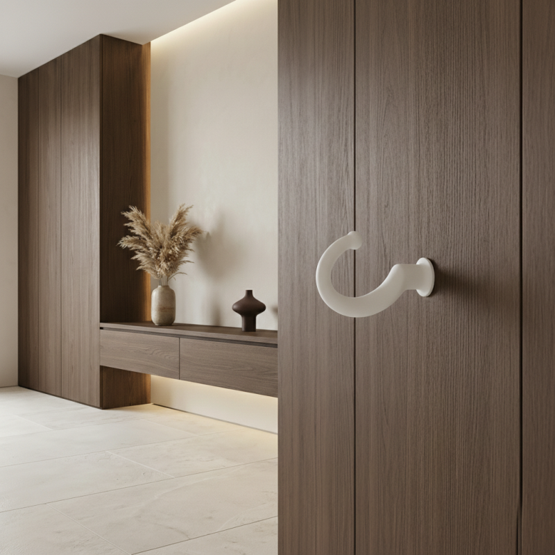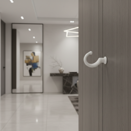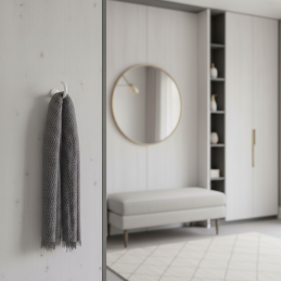 Elegantný kovový vešiak ORSA v bielom matnom prevedení je decentným a nadčasovým doplnkom do moderných aj klasických interiérov. Vďaka jemnému oblému tvaru pôsobí nenápadne, no zároveň prakticky – ideálny na zavesenie oblečenia, kabeliek, uterákov alebo doplnkov.