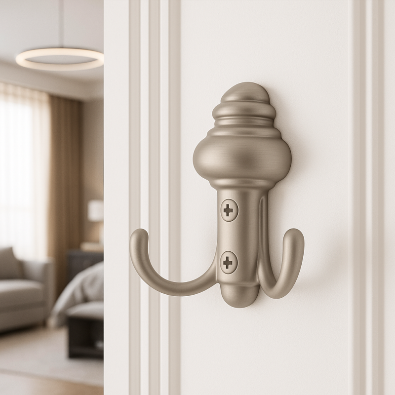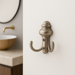 Elegantný dvojvešiak v saténovom prevedení, ktorý spája klasický dizajn s moderným vzhľadom. Je ideálny do predsiene, kúpeľne, spálne alebo šatníka. Vďaka svojmu oblému tvaru pôsobí jemne a zároveň poskytuje dostatok priestoru na zavesenie viacerých kusov oblečenia či doplnkov.