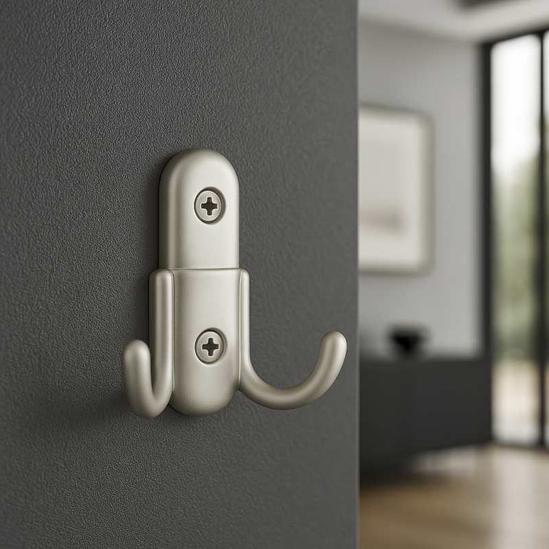 Moderný a kompaktný dvojvešiak v elegantnom saténovom prevedení. Vďaka svojmu jednoduchému tvaru sa skvele hodí do moderných aj klasických interiérov – či už do predsiene, kúpeľne, kuchyne alebo spálne.