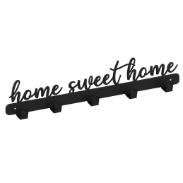Elegantný vešiak na stenu SWEET HOME v čiernej matnej farbe spája funkčnosť a dizajn. S nápisom “HOME SWEET HOME” sa stane výrazným, no vkusným doplnkom každej predsiene, chodby či spálne. Dokonale zapadne do moderných aj rustikálnych interiérov.