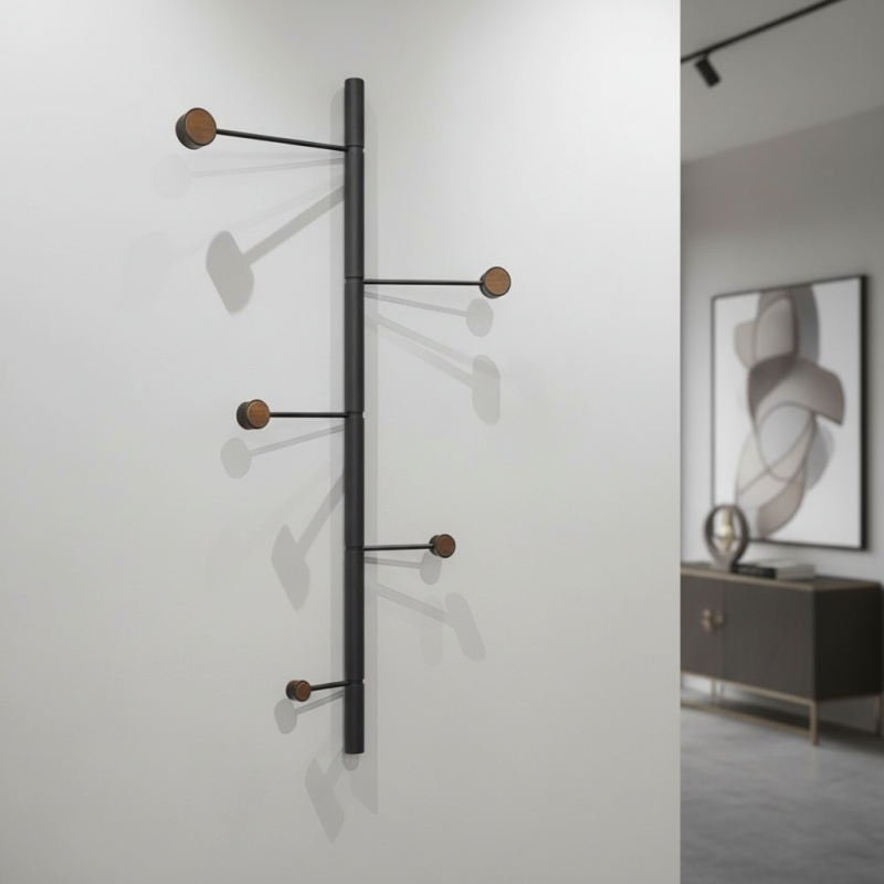 Nástenný vešiak YOKO je výrazný interiérový doplnok, ktorý spája moderný dizajn, funkčnosť a kvalitné materiály. Svojím originálnym vizuálnym riešením okamžite zaujme a stane sa dominantou predsiene, chodby, kancelárie či šatníka.