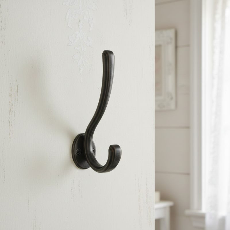 Elegantný nábytkový vešiak ARLES v povrchovej úprave meď patina je ideálnym doplnkom pre rustikálne, vintage či klasické interiéry. Jeho decentné tvarovanie a kvalitné kovové prevedenie s medenou patinou dodávajú nábytku alebo dverám štýlový a ušľachtilý vzhľad.