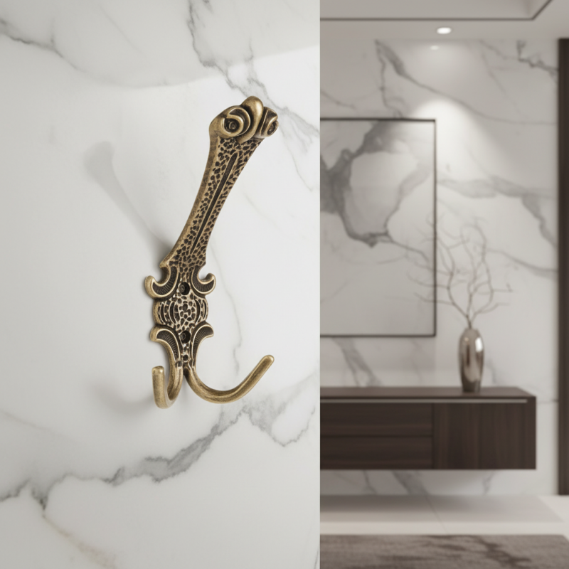 Vešiak VERDI MAXI v povrchovej úprave staromosadz je ideálnou voľbou pre milovníkov tradičného, historizujúceho alebo vintage štýlu. Jeho bohato tvarované línie, reliéfne zdobenie a staromosadzný povrch dodávajú priestoru jedinečný charakter a noblesu.