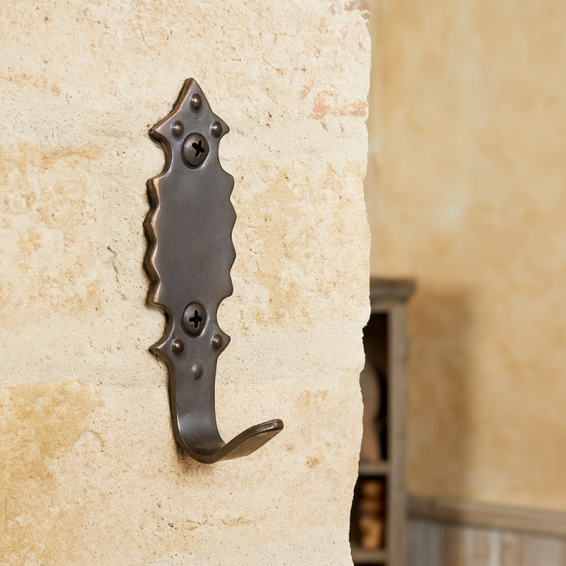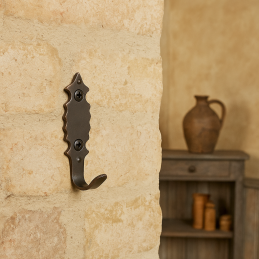 Štýlový rustikálny vešiak na nábytok v prevedení mosadz, ktorý dodá každému interiéru elegantný a historický nádych. Je ideálny na použitie v štýlovom nábytku, na dvierkach, skrinkách či stenách v interiéroch s klasickým alebo vintage charakterom.
