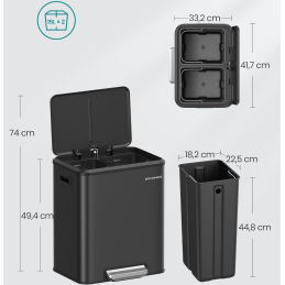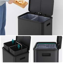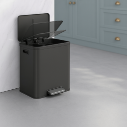 Odpadkový kôš STING ponúka elegantné a efektívne riešenie pre triedenie odpadu priamo v domácnosti či kancelárii. Vďaka dvom oddeleným priehradkám s objemom 2×15 litrov budete mať plast, papier, sklo alebo zmiešaný odpad vždy prehľadne roztriedený v jednom koši – bez potreby viacerých nádob.