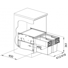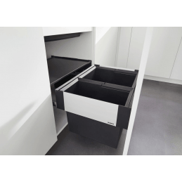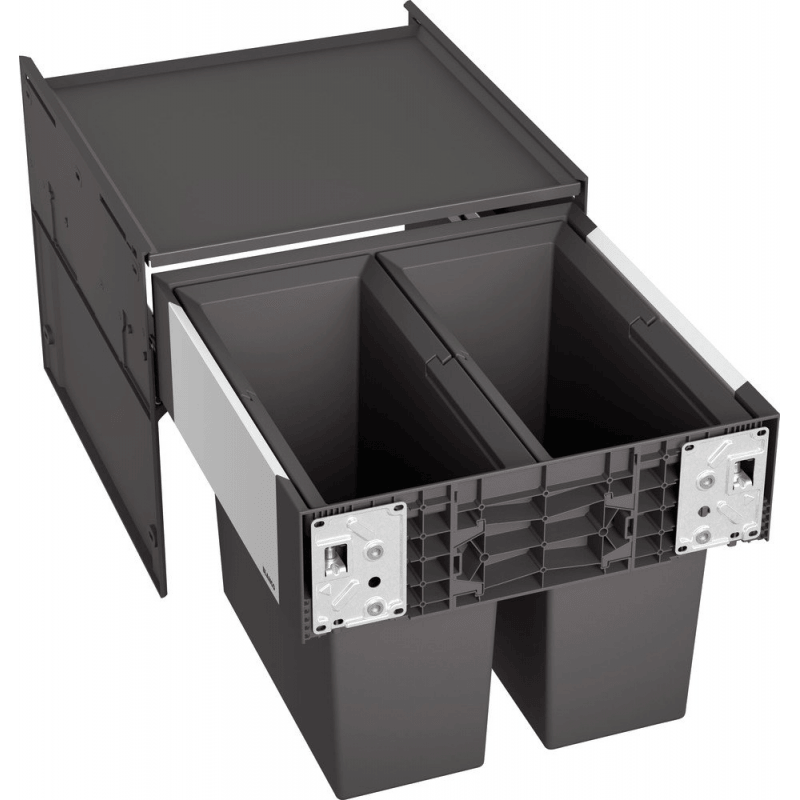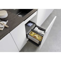 Systém je určený pre spodné skrinky so šírkou 45 cm a umožňuje pohodlné triedenie odpadu v samostatných nádobách s praktickými úchytmi.