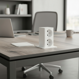 Elegantná výsuvná zásuvka SQUARE UP v bielej matnej farbe ponúka moderné a nenápadné riešenie pre kuchyne, pracovné stoly či kancelárie. V zatvorenom stave dokonale splýva s povrchom nábytku – po jemnom zatlačení sa vysunie a sprístupní dve praktické 230V zásuvky.